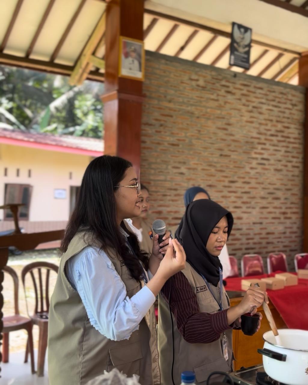 Demonstrasi dilakukan secara langsung oleh mahasiswa, dengan menggunakan alat sederhana seperti panci dan api kompor. Para peserta tampak antusias mencoba langsung cara pengolahan konsentrat mulai dari pelarutan bahan, pengadukan, pemanasan, hingga proses pengepakan menggunakan botol atau wadah bekas yang higienis. Produk konsentrat ini dapat dikemas dan dipasarkan sebagai minuman konsentrat, pelengkap minuman dingin, atau bahkan sebagai olesan roti.